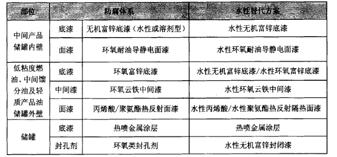 根据上面表格所列,目前钢质石油储罐使用的重防腐涂料,除了水性无机富锌底漆是纯水性环保涂料外,其余都是各类溶剂型重防腐涂料,使用过程中存在较大的火灾安全隐患和环保排放问题。