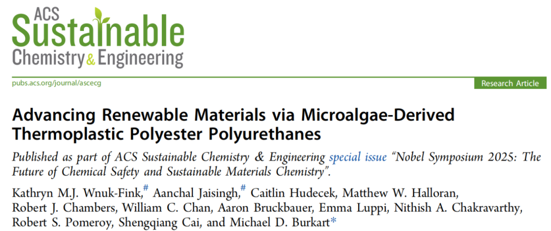 近日,加利福尼亚大学圣迭戈分校Michael D. Burkart教授团队以微藻油为可再生原料,合成了75%微藻含量的PDO-TPU和全球首个100%微藻来源的NDO-TPU。
